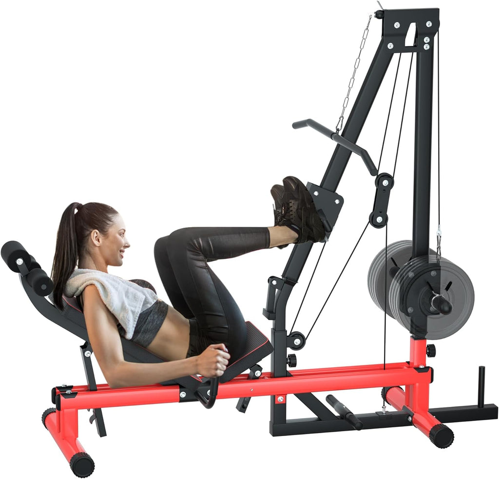 - 【All in One Full Body Workouts】: This 2-IN-1 Leg Press and LAT Pull Down Machine adopts a degree angled triangular structure, making it stable no matter how much weight you use, increasing stability and making it safer. This 2-IN-1 Machine will strengthen various muscle groups in your full body.