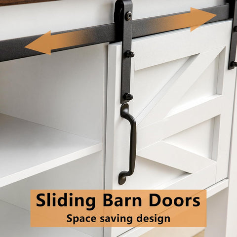 STRONG & STURDY STEEL SLIDING RAIL — The two rustic barn doors on the front of this sofa table are hung on a metal sliding rail made of selected steel, ensuring smooth and jamming-free sliding.The rail is covered by corrosion resistant paint to prevent rust, and to prolong the service life