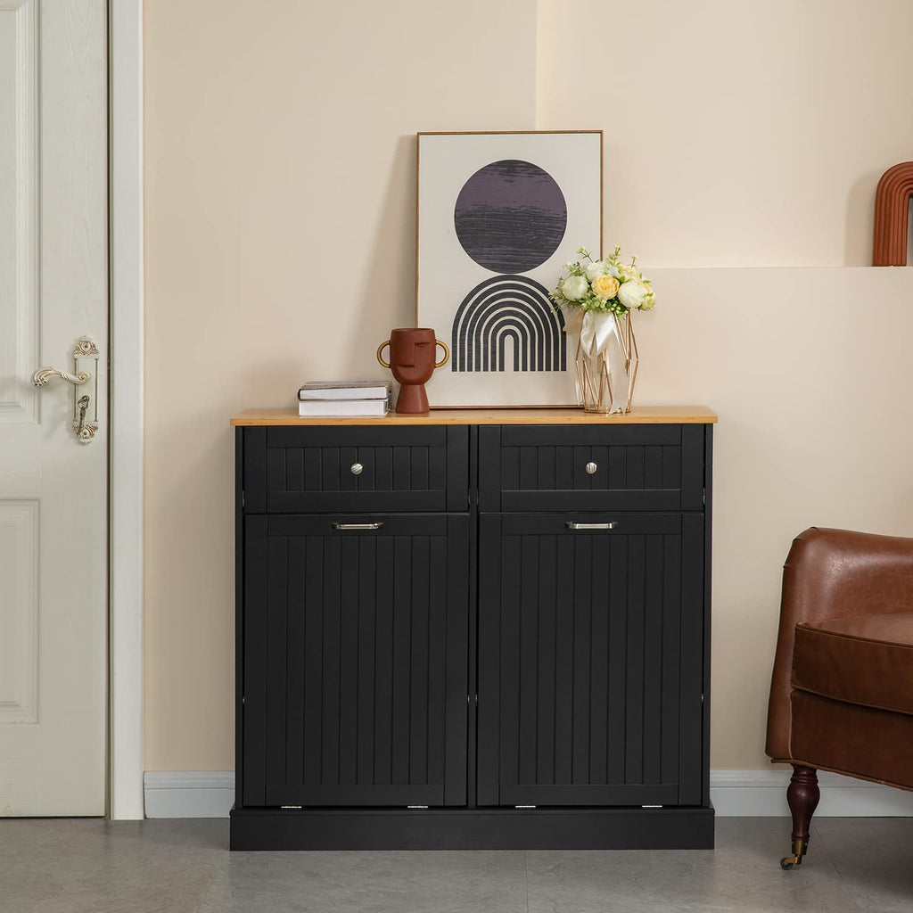 Reliancer Tilt Out Trash Can Cabinet with Hideaway Drawer